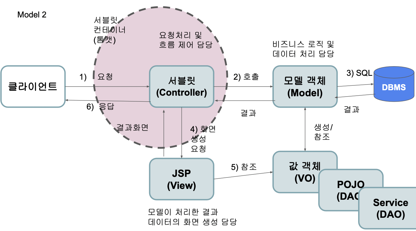모델 2 : Controller 역할을 Servlet이 담당함.
