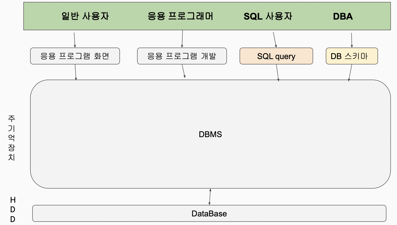 2) 데이터베이스 + 이를 관리하는 소프트웨어(DBMS) + 응용프로그램