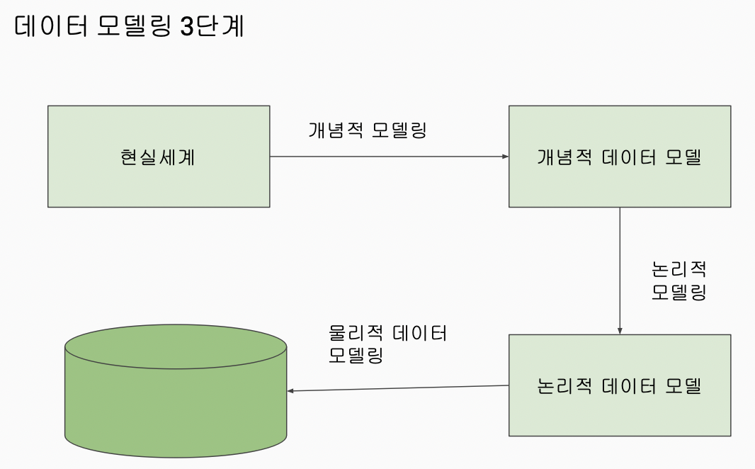 1) 현실 세계에 존재하는 데이터를 컴퓨터 세계의 데이터베이스로 옮기는 과정.