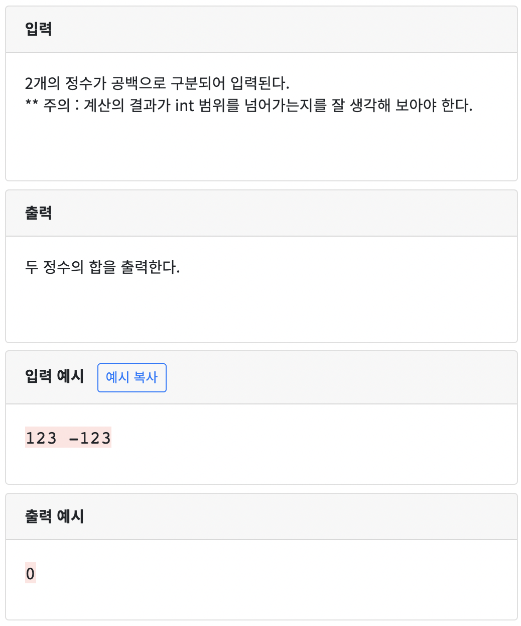 | CodeUp_Java 기초 100제 - [기초-산술연산] 정수 2개 입력받아 합 출력하기(2) 39(설명) (0) | 2022.02.03 |