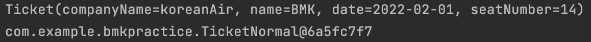 val ticketB = TicketNormal("koreanAir2", "BMK2", "2022-02-01", 13)