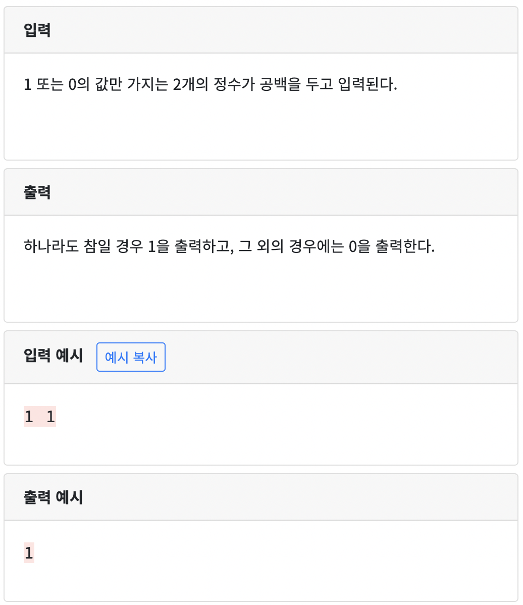 | CodeUp_Java 기초 100제 - [기초-논리연산] 둘 다 참일 경우만 참 출력하기 54(설명) (0) | 2022.02.08 |