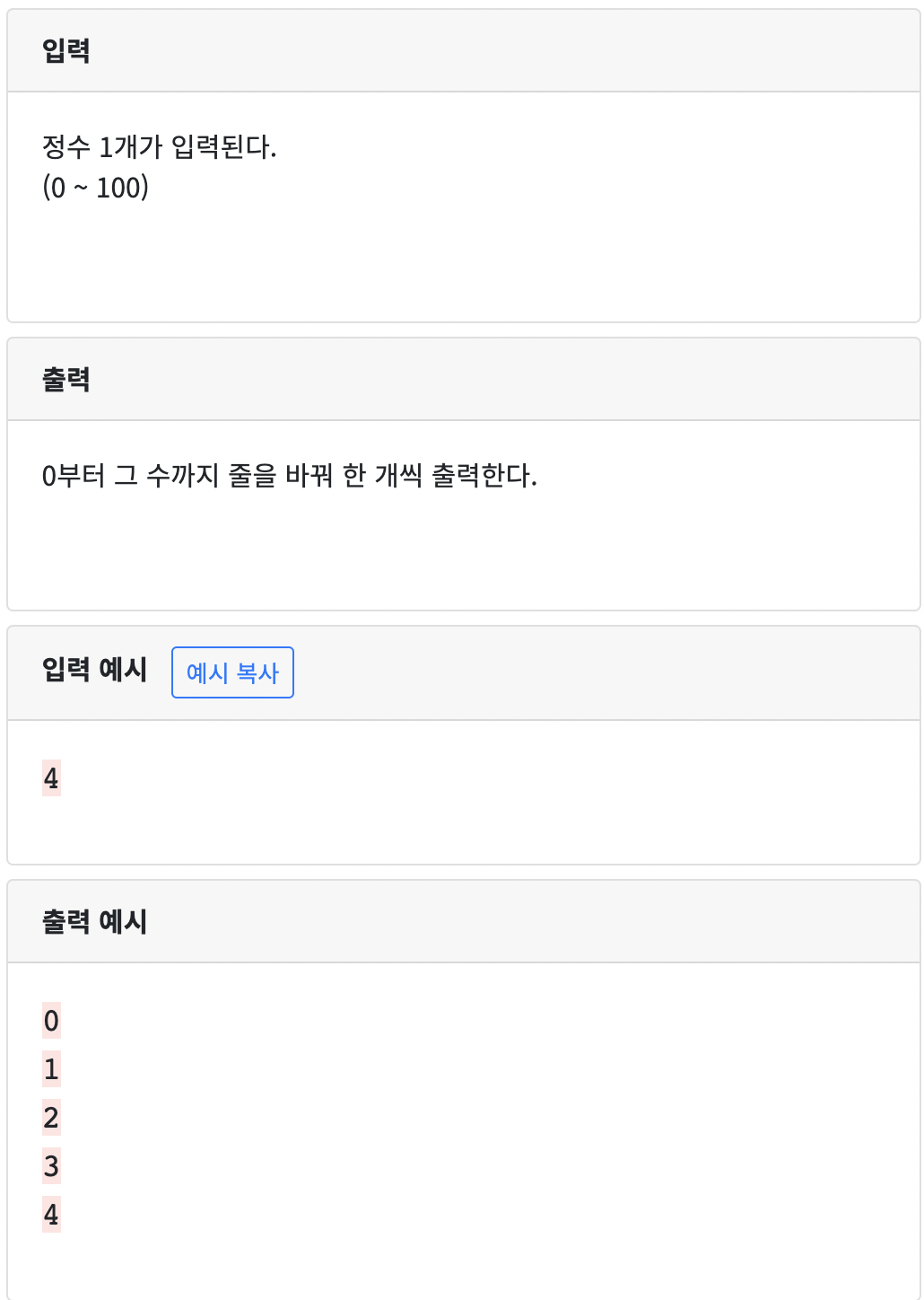 77 : 정수 1개 입력받아 그 수까지 출력하기