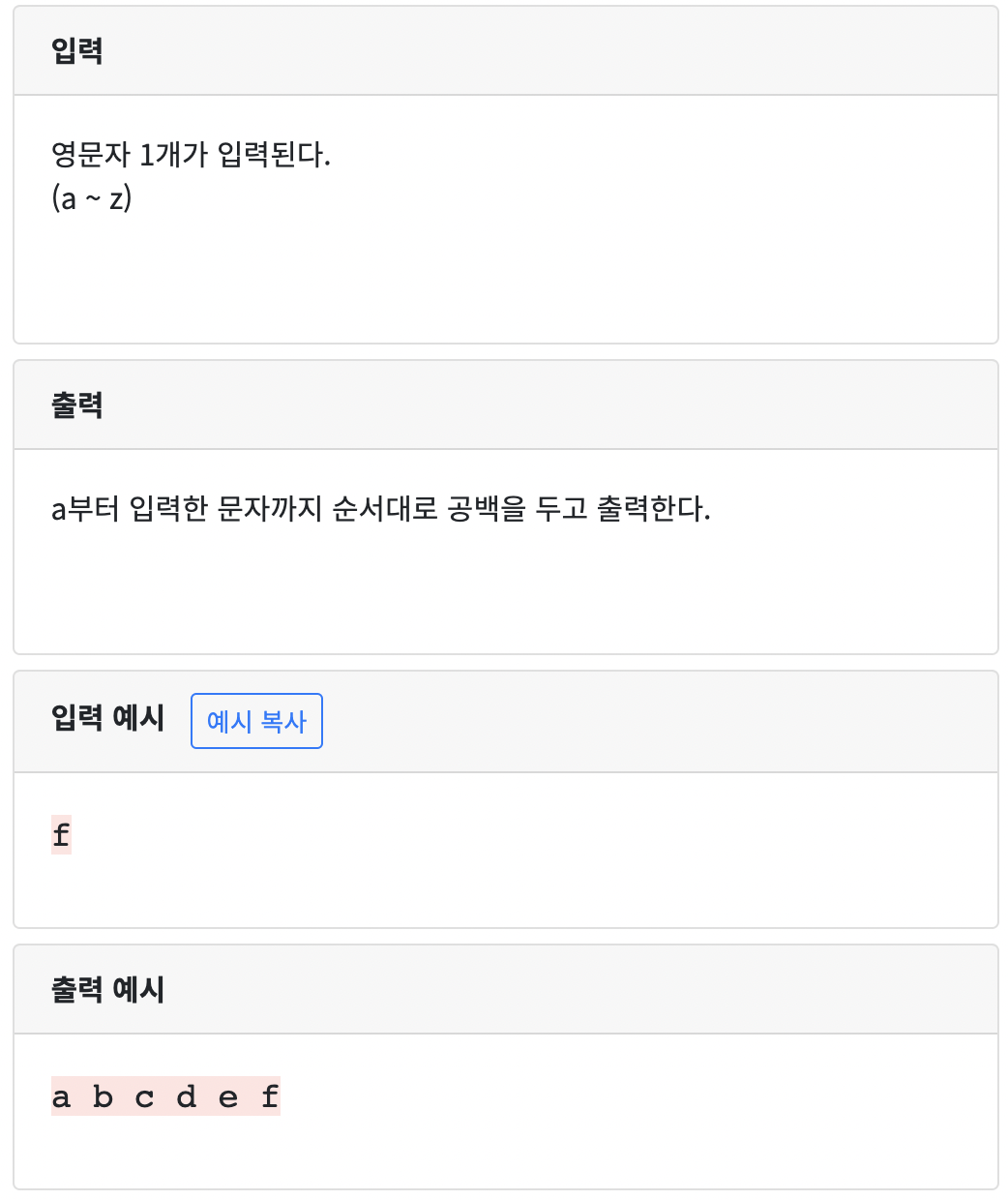 76 : 문자 1개 입력받아 알파벳 출력하기
