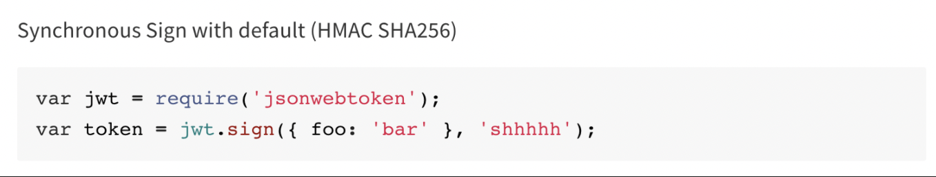 var token = jwt.sign(user._id.toHexString(), 'secretToken')