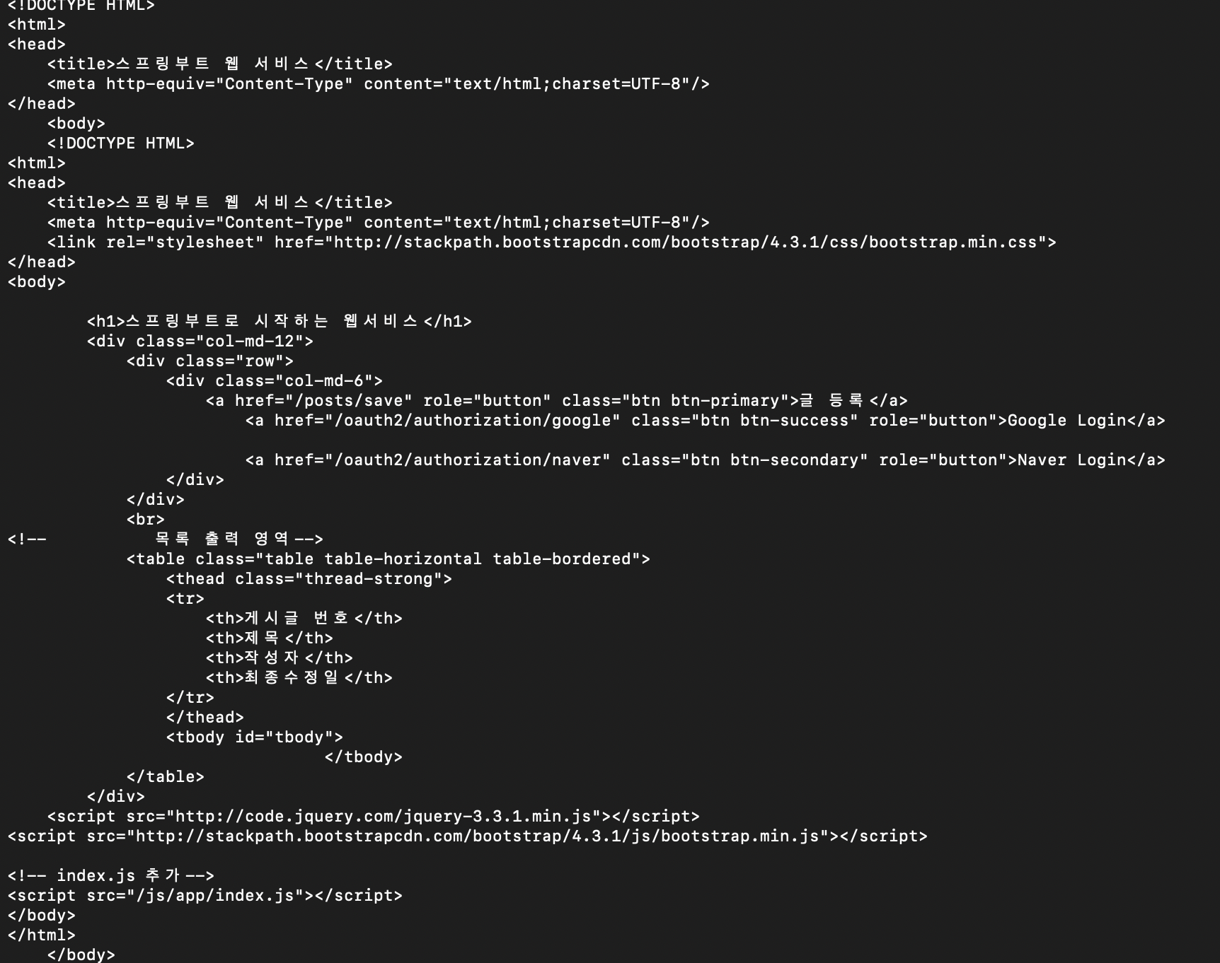 - ClientRegistrationRepository를 찾을 수 없다는 에러가 발생하면서 애플리케이션 실행에 실패 했다는 것을 확인