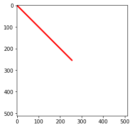 image = cv2.line(image, (0, 0), (255, 255), (255, 0, 0), 5)