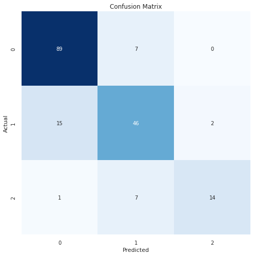sns.heatmap(cm, annot=True, vmin=0, fmt='g', cbar=False, cmap='Blues')
