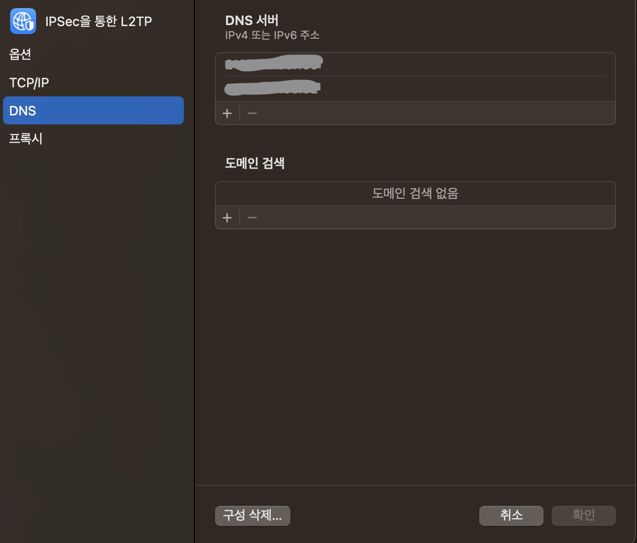 IPv4 주소와 IPv6 구성을을 해놓으면, DNS 서버도 자동으로 생성이 되어서, 문제가 되지 않는다.