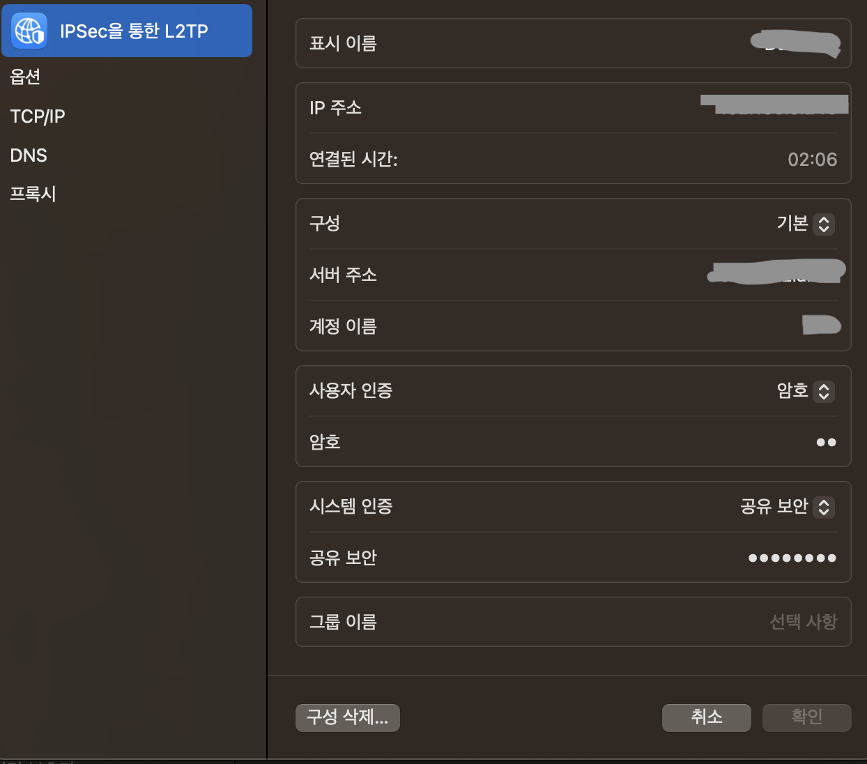 일단, 간단하게 IPSec을 통한 L2TP로 vpn 접속을 진행하였고,