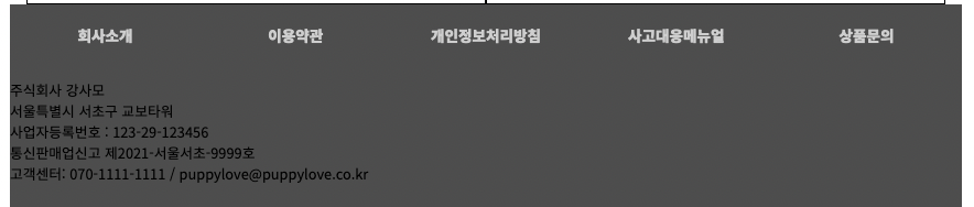 고객센터: 070-1111-1111 / puppylove@puppylove.co.kr<br/>