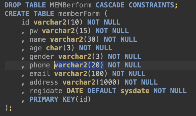 * id varchar2(10) NOT NULL