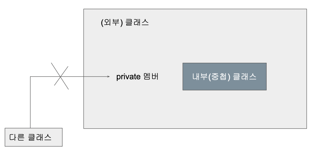 1) 클래스 내부에 선언한 클래스로 이 클래스를 감싸고 있는 외부 클래스와