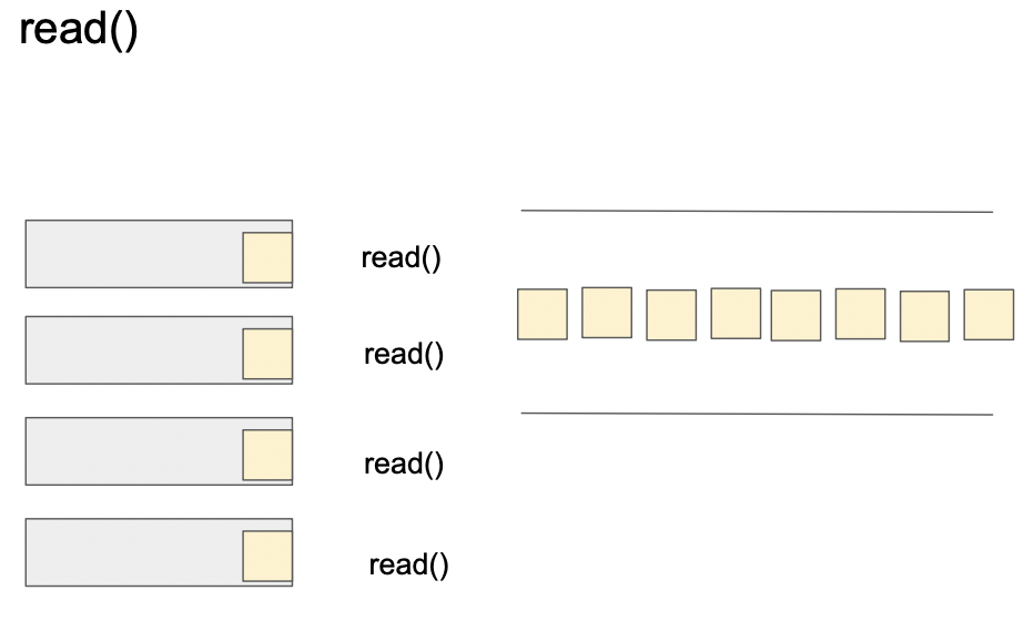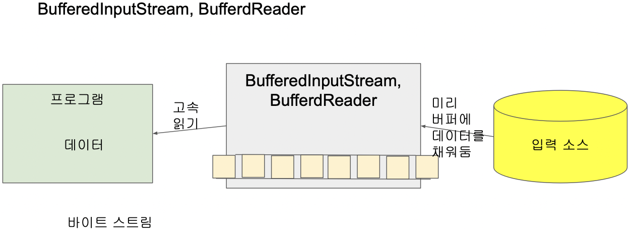 - 입출력 소스와 직접 작업하지 않고 메모리 버퍼(buffer)와 작업하므로 실행 성능 향상.
