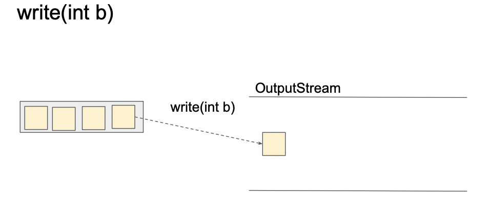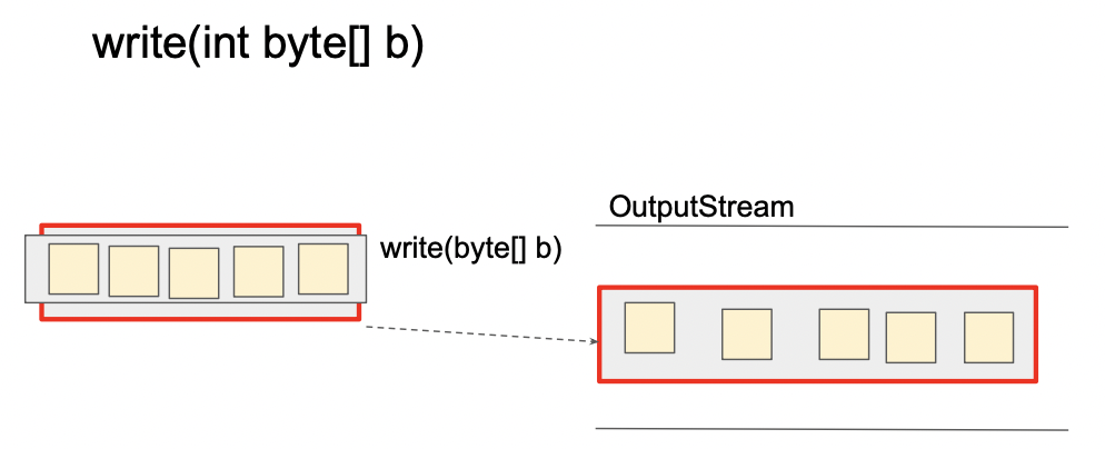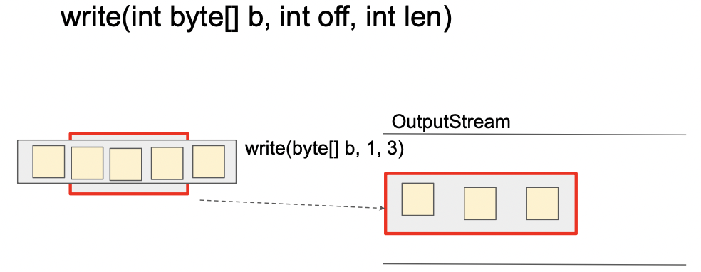 - void write(byte[] b, int off, int len) : b[] 배열에 있는 자료의 off위치부터 len 개수만큼 자료를 출력함.