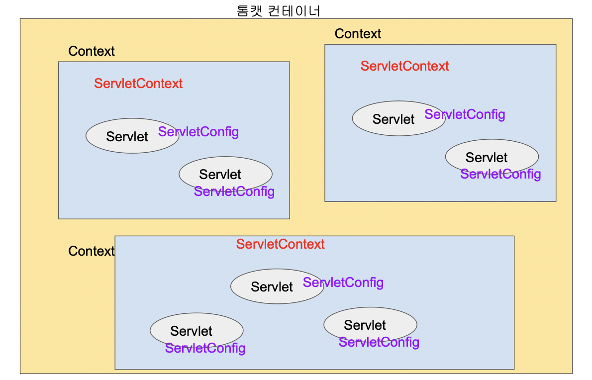 - 컨텍스트(웹 어플리케이션)마다 하나의 ServletContext가 생성됨.