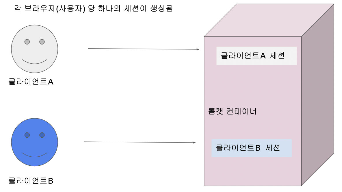 - 브라우저(사용자)당 한 개의 세션(세션 id)이 생성됨