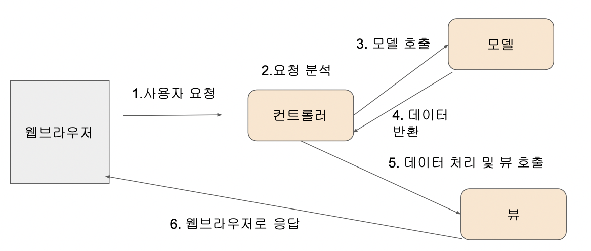 - 사용자의 요청을 컨트롤러인 서블릿이 받음